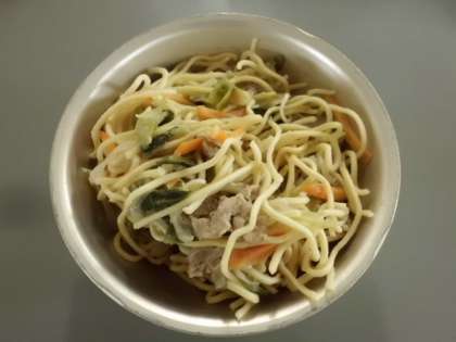 「塩焼そば,牛乳,ひじきのいためもの,プリン」
