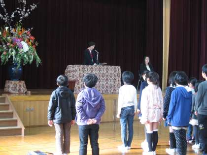 着任式では,今年度転任してこられた教職員はお一人でした。