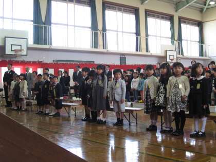 担任の松元先生が新1年生の前に立たれると,みんなで一斉