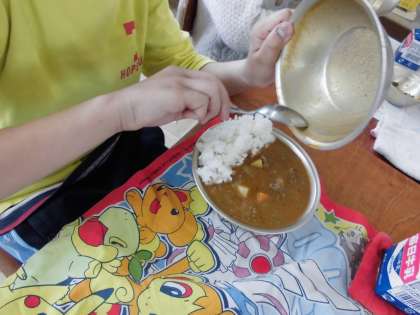1年生は,初めて学校のカレーを食べました。