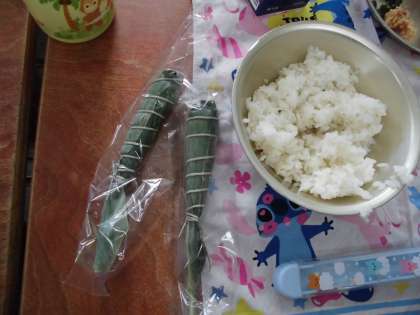 「ちまき」は,米粉で作ったお餅を笹の葉で巻いたものです。