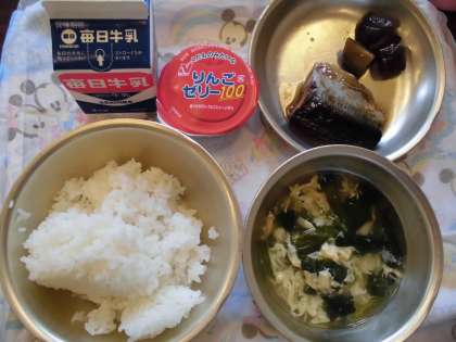 「ごはん,牛乳,にしんなす,かきたま汁,りんごゼリー」