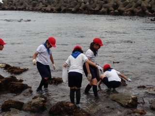 恐る恐る磯の怪盗ルパン“ヒトデ”にふれています。京都