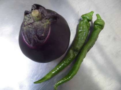 京都の野菜の「賀茂なす」と「万願寺とうがらし」を使いました。