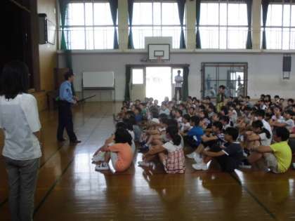 校長先生のお話の後,防犯教室がありました。