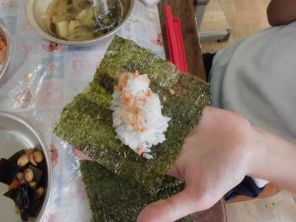 手巻きのりのように巻く子などいろんなおにぎりがありました。