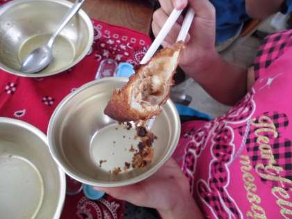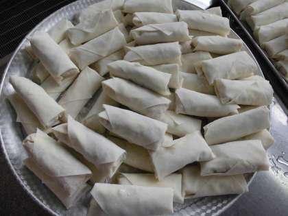 ひとつひとつ春巻の皮で巻いて油で揚げました。