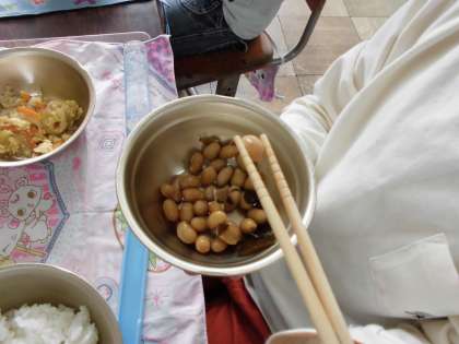一粒一粒おはしで上手につまみながら食べている子もありました。