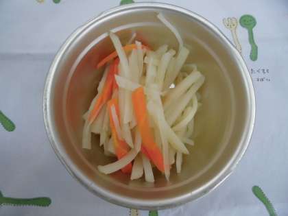 今日の朝,ダンボール箱いっぱいのじゃがいもが給食室に届き,