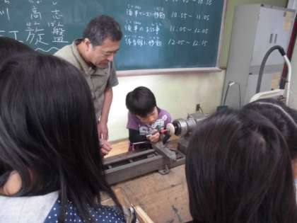木工用の旋盤を使用してコマを作りました。旋盤を使うのも
