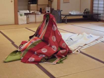 十二単を着るときは,1枚1枚ゆっくりと着ていくので時間が