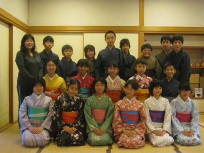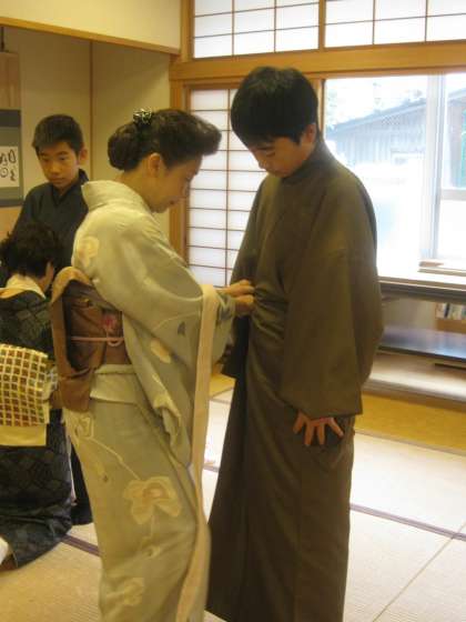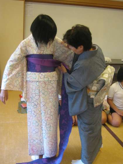 西陣織会館から着付けの先生方に来ていただき,着物は
