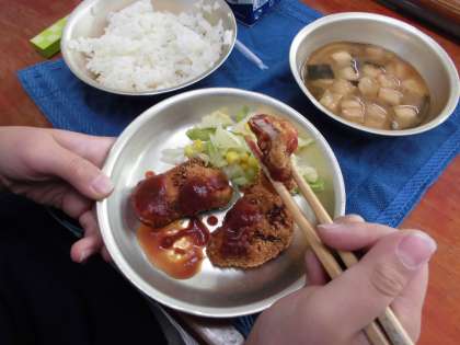 給食調理員さんが心をこめて作ってくださった「ヒレカツ」は,