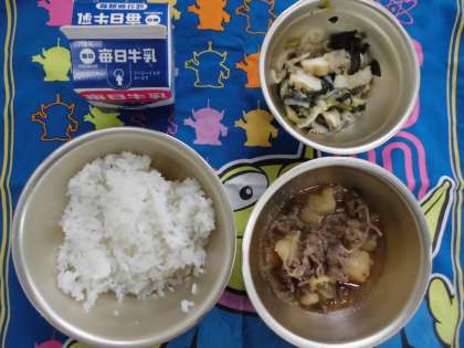 「ごはん,牛乳,肉じゃが,切干大根の煮びたし」