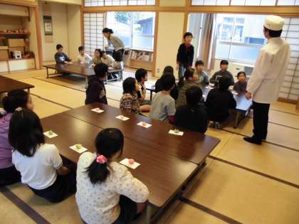 6時間目では和菓子とお茶を味わいながら,