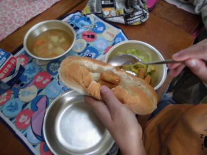 「ホットドッグ」は,給食では初めて登場する献立で,