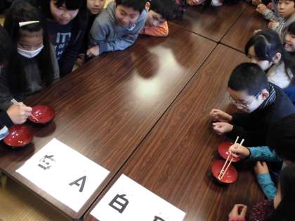 おはしの使い方が上手な高学年でも苦戦している様子がありました。