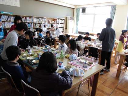 なかなか一緒に給食を食べる機会がない先生とも同じ給食を