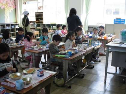 1年生のみんなは,「おいしい!おいしい!…。」と言っ