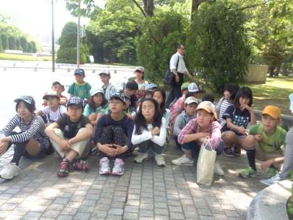 その後,平和の集いをするために少し木陰で休憩中のようですね。