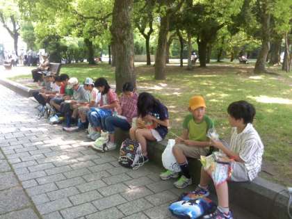 木陰でのんびりとランチタイムです。緑の中でのお弁当の味は格別です。