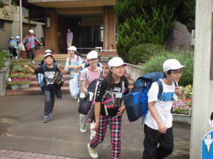 バスに乗り込み,元気に元町小学校を出発していきました。