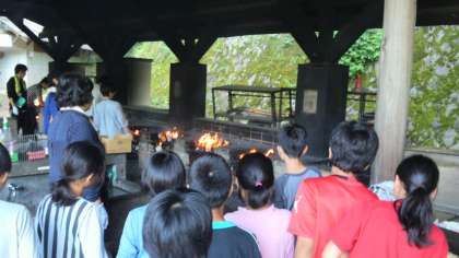 牛乳パックにアルミホイルごとパンをつめて焼きます。