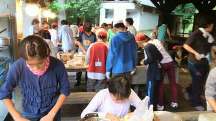 2日目の今日は,3食とも野外で自分たちで調理します。