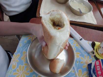 パンに具をはさんで食べるのは,とても楽しいようです。