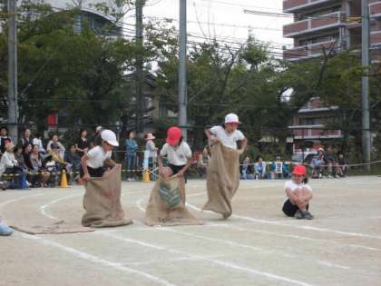 麻袋に入ってピョンピョン飛ぶ姿がおもしろかったです。
