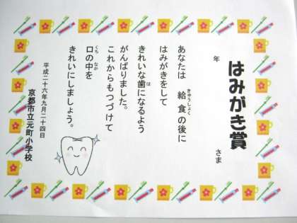 5日間とも歯みがきができ『はみがき賞』をもらった児童は,