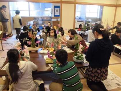 元町学区の元婦人会の皆さんのお世話になり,5年生の華道教室