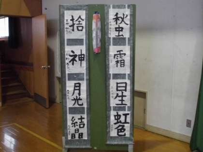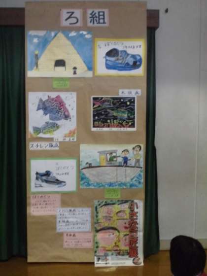 体育館で作品展が行われています。いずれも力作ぞろいで,