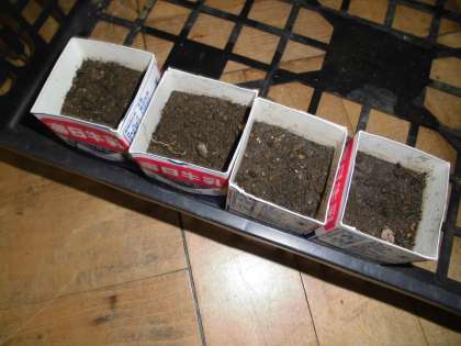 理科の学習でツルレイシの種をまきました。牛乳パックの植木鉢に種をまきました。