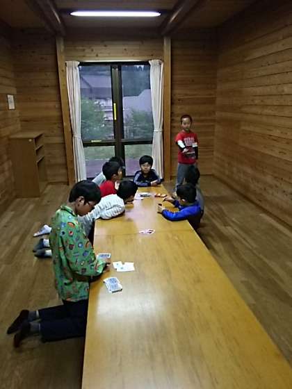 夕食が終わって,各部屋にもどりました。ベッドで話す子やミーティング室でカードゲームをする子など思い思いの時間を過ごしています。