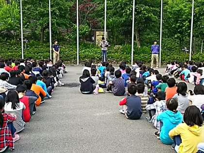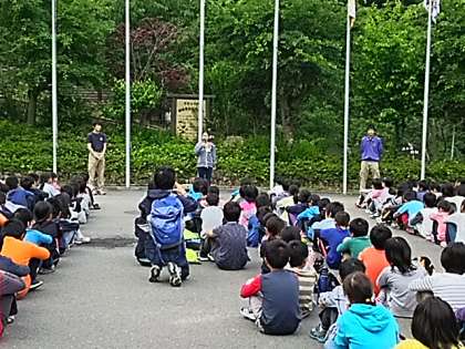 山の家宿泊学習の2日目。みんなきちんと起きられました。朝のつどいは,各校の紹介をしました。本校も代表の子が,立派に学校紹介をしました。