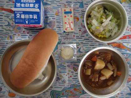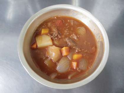 今日のシチューは,ホールトマトを使ってさっぱりとした