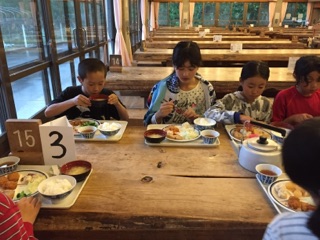 最後の夕食です。グルーブみんなすっかり仲良くなりました。食べ終わったあと,キャンドルファイヤーを行います。