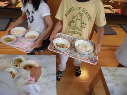 給食当番以外の人も協力してみんなで準備も