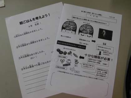 5時間目に河合先生と土井先生にお越しいただき,朝ごはんについての学習をしました。朝ごはんをしっかり食べることが成長期の自分たちには大切であることを学習しました。先生方,ありがとうございました。