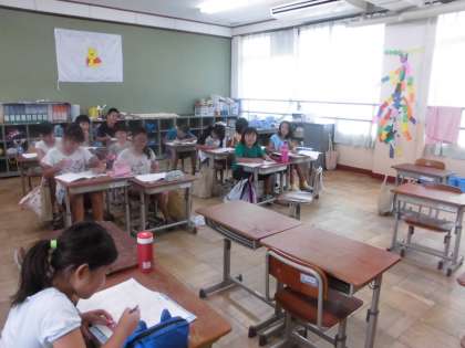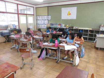 今日は4年生学習会3日目です。中学年登校日の後,教室に集まり夏休みの宿題をいっしょにやりました。どの子ども達も,おうちで熱心に取り組んでくれているようでたくさん進んでいるようでした。