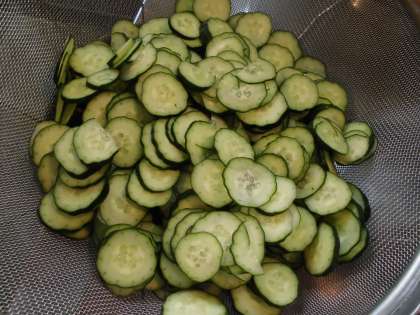 「ごま酢煮」には,季節の野菜のきゅうりを使いました。