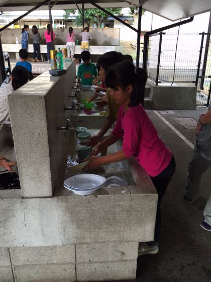 食べ終わったあとは後片付けです。これもみんなで協力して,手際よくできています。