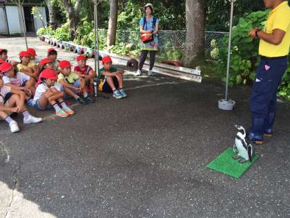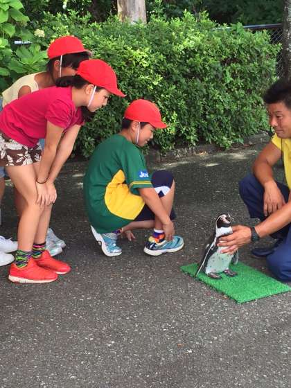 次の体験はペンギンタッチです。飼育員さんから説明を聞いた後,一人ずつおそるおそる触っていました。