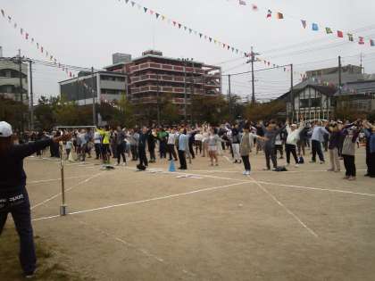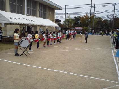 心配されていた雨も,朝にはあがり,予定どおり9:00から区民運動会が行われています。開会式では,昨日ジョイントコンサートで出演したドラムスティックの子どもたちが連日おおぜいの方々の前で演奏を披露しました。