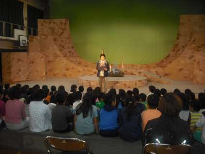 その後,演劇鑑賞会があり,劇団「風の子」による「モンゴルの白い馬」という劇を鑑賞しました。学芸会を控えて,子どもたちも劇団の方々の声の出し方や振付が参考になったと思います。