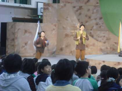 午前中に体育館で創立記念式と演劇鑑賞会がありました。