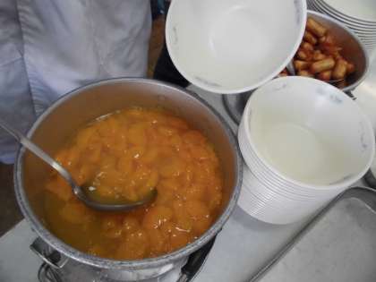 給食調理員さん手作りの「みかん寒天」がデザートに