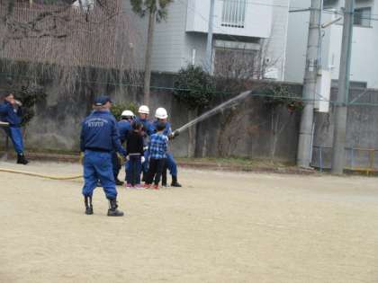 放水体験は,めったにできない体験で重いホースを持って火点に向けて放水しました。また,通報の練習も電話器を使ってあわてずに正確に知らせる練習をしました。