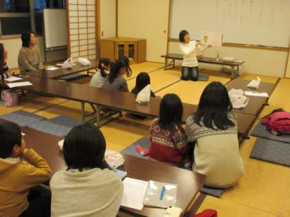19:00から「ふれあいサロン」で家庭教育学級があました。今回は,絵本店を経営しておられる花田睦子さんにお越しいただいて,「子育てと読書」と題して講演と絵本の読み聞かせをやっていただきました。子どもたちも参加して,絵本の読み聞かせに集中していました。